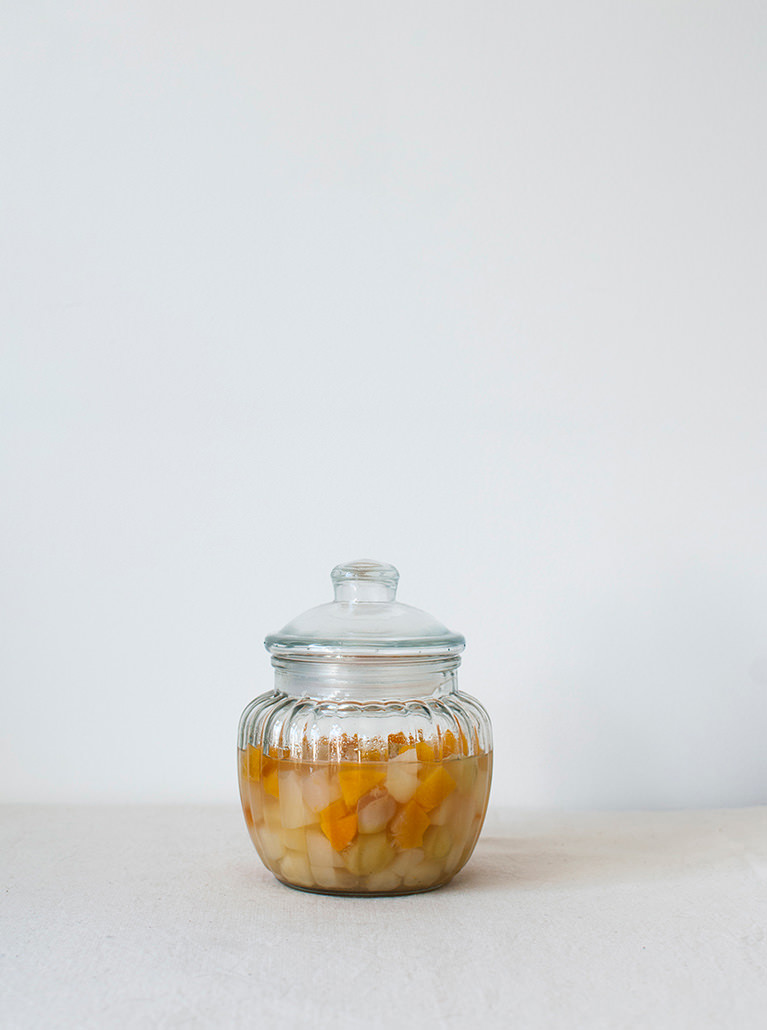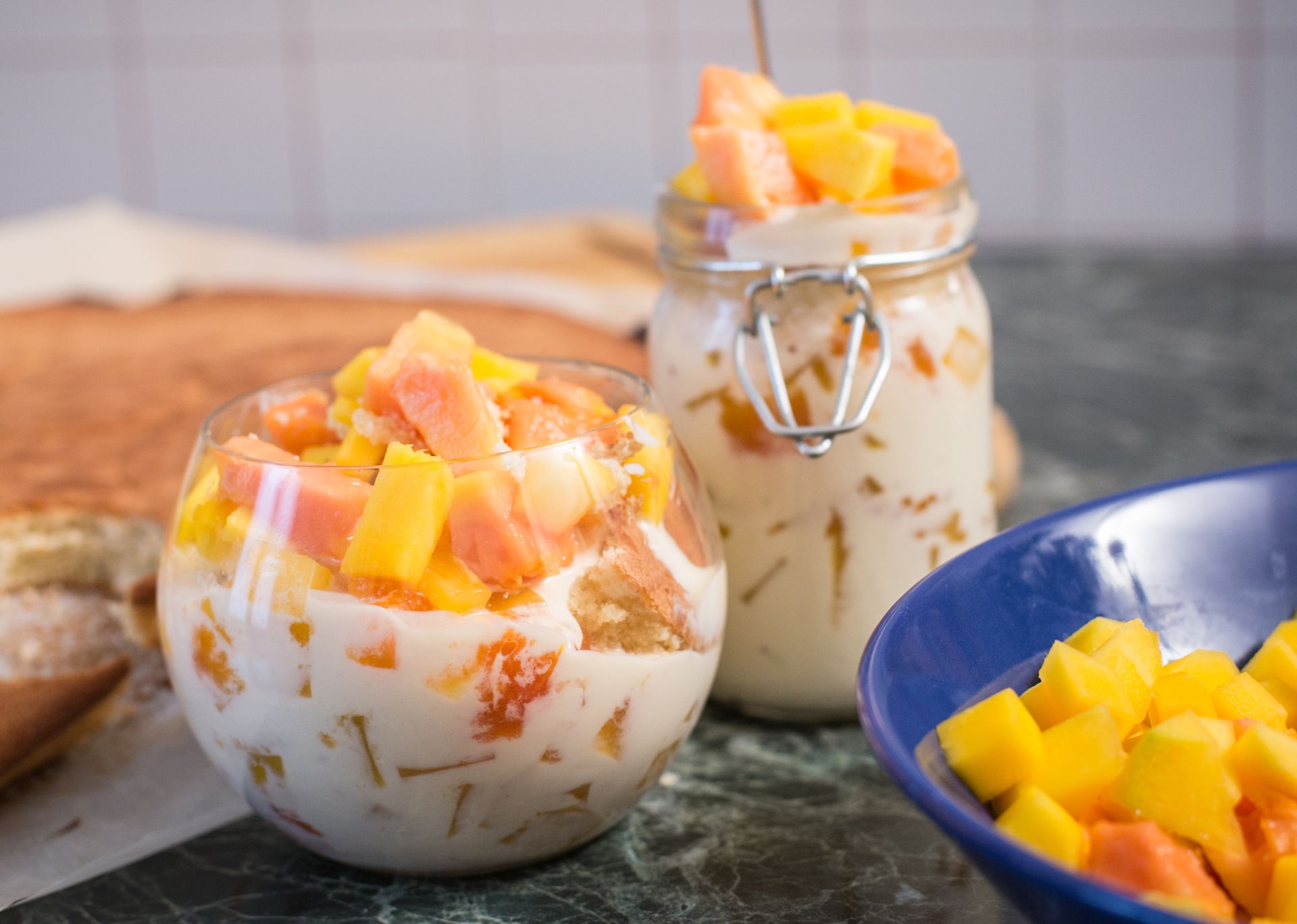Nella cucina di Davide Oldani la frutta ha un ruolo di primo piano: in questa ricetta, tratta dal suo ultimo libro, lo chef stellato propone «un piccolo tocco di dolce, perfetto per concludere un pasto».