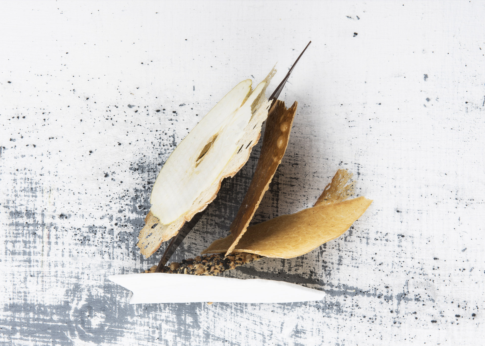 Mille s-foglie di mela, meringa, cracker ai semi, panettone e spezie D’O